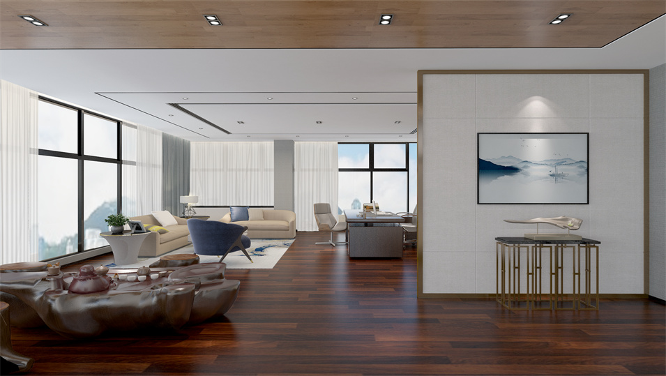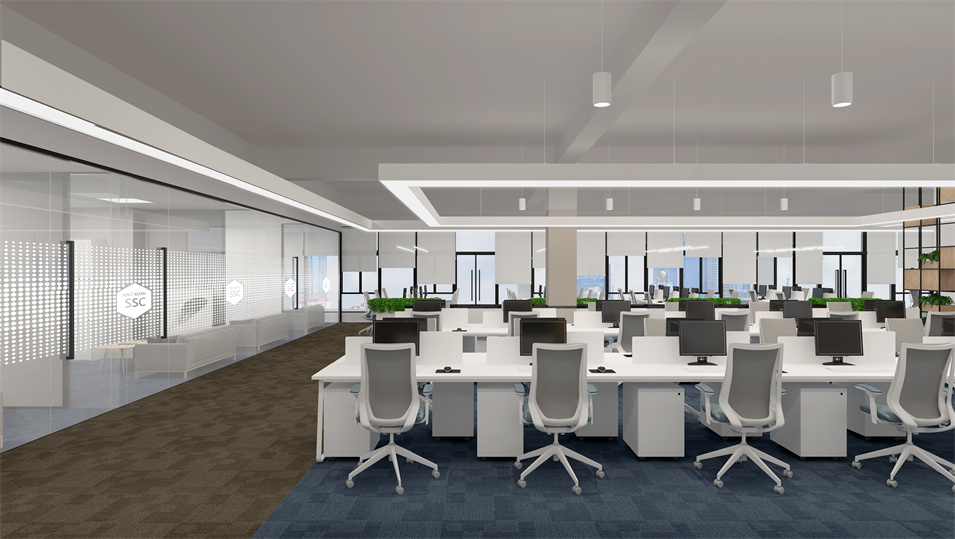 設(shè)計(jì)介紹:主要展示前臺(tái)、洽談區(qū)、走廊、貴賓區(qū)、會(huì)議室、辦公區(qū)等各個(gè)區(qū)域?qū)嵨飯D,設(shè)計(jì)師們采用現(xiàn)代簡(jiǎn)約風(fēng)格辦公室設(shè)計(jì),主要以白色為主,藍(lán)色更符合智能化科技的公司形象,通過(guò)幾何圖形與條紋裝飾打造科技智能的辦公空間。